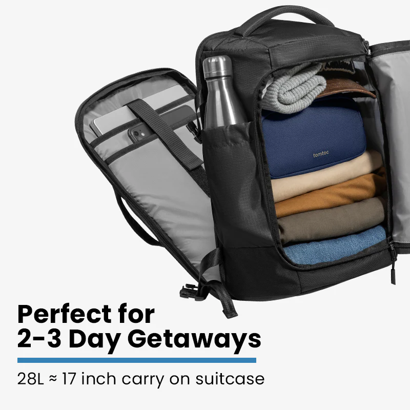 Với dung tích 28L, chiếc balo này là lựa chọn lý tưởng cho những chuyến đi cuối tuần hoặc nghỉ dưỡng 2-3 ngày. Kích thước balo được IATA chấp thuận, dễ dàng để vừa trong ngăn đựng hành lý xách tay trên máy bay, giúp bạn tiết kiệm thời gian và không cần phải ký gửi hành lý.