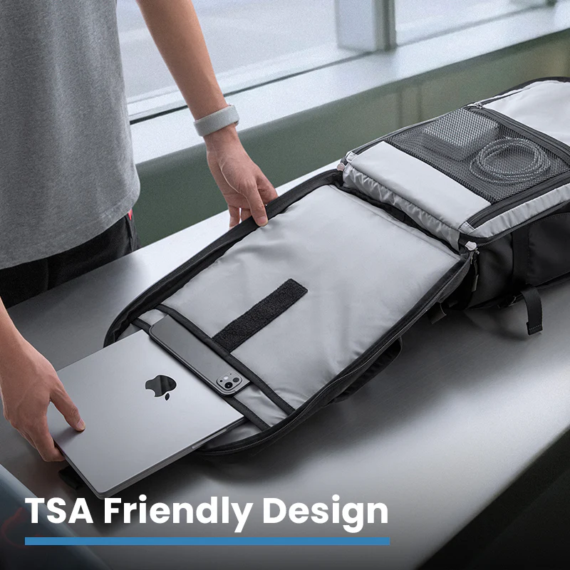 Ngăn đựng laptop có thể mở ra từ 90° đến 180°, giúp việc kiểm tra an ninh tại sân bay trở nên nhanh chóng và thuận tiện, không cần phải lấy laptop ra khỏi balo.