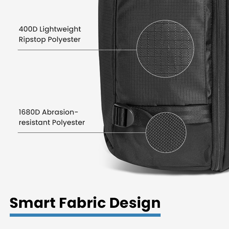 Balo được làm từ vải polyester chất lượng cao với khóa kéo YKK cao cấp đáng tin cậy. Đặc biệt, sản phẩm sử dụng hai loại vải thông minh: lớp vải chống rách ở trên và lớp vải chống mài mòn ở dưới, đảm bảo độ bền tối đa và bảo vệ đồ đạc của bạn trong mọi điều kiện.