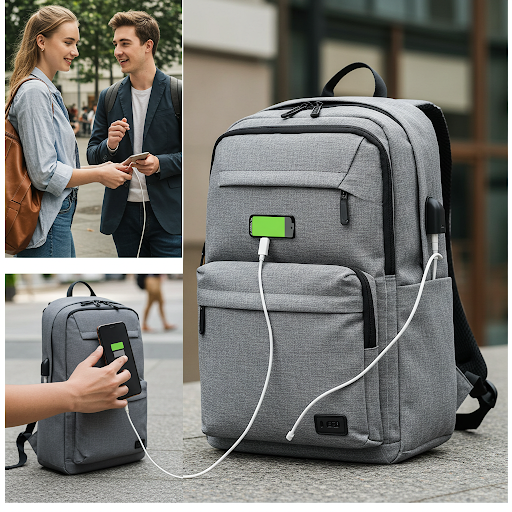 - Tính năng hiện đại: Một số mẫu balo tích hợp cổng sạc USB, ngăn đựng riêng cho phụ kiện nhỏ như sạc, chuột, tai nghe.