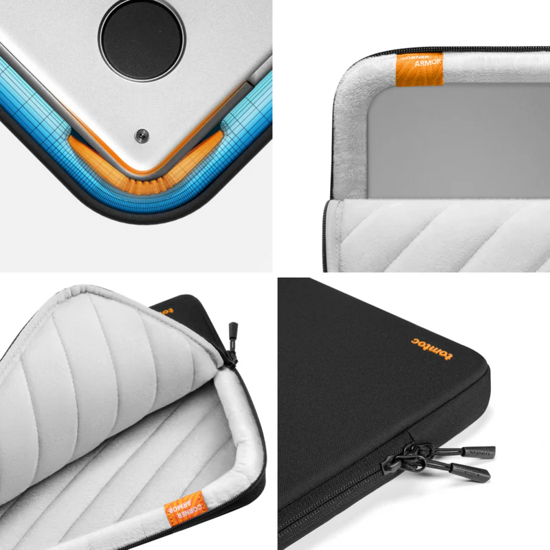 Một trong những điểm nổi bật không thể không nhắc đến của Túi đựng macbook tomtoc Defender-A13 chính là công nghệ CornerArmor. Hệ thống này giúp bảo vệ máy tính của bạn từ mọi góc độ, đảm bảo an toàn trước những va chạm bất ngờ trong quá trình sử dụng hàng ngày. Nhờ vào công nghệ này, các cạnh của túi được trang bị độ đàn hồi cao và lớp đệm mềm, tạo ra một “lá chắn” vững chắc giúp giảm thiểu tối đa các tác động mạnh.