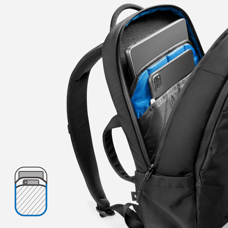 Một trong những tính năng nổi bật của Balo laptop UrbanEX-T65 S chính là ngăn đệm xốp được tích hợp bên trong. Ngăn đệm này không chỉ mang lại sự mềm mại, êm ái khi đặt máy tính xách tay, mà còn có khả năng bảo vệ thiết bị khỏi các tác động của va đập trong quá trình di chuyển. Với lớp đệm siêu dày, balo đảm bảo rằng các cú sốc không gây hại cho máy tính xách tay 15,6 inch hay iPad 12,9 inch của bạn.