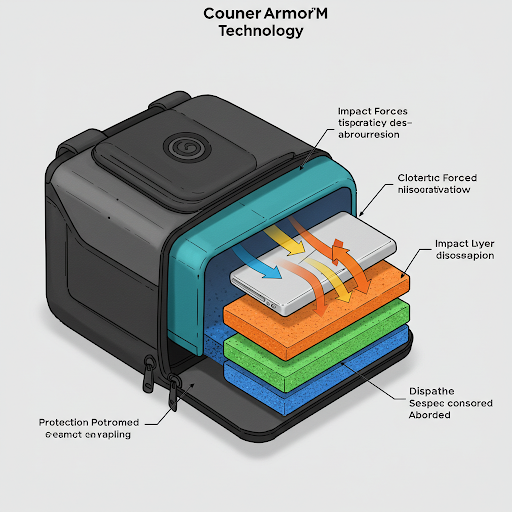 Một trong những yếu tố quan trọng tạo nên sự khác biệt của túi chống sốc tomtoc chính là công nghệ CornerArmor™. Đây là công nghệ độc quyền được phát triển để tăng cường khả năng chống sốc cho túi, giúp hấp thụ và phân tán lực va đập một cách hiệu quả. Khi thiết bị rơi hay bị va đập, hệ thống lớp đệm và công nghệ CornerArmor™ sẽ hoạt động đồng bộ để bảo vệ toàn bộ bề mặt của thiết bị, giảm thiểu tối đa nguy cơ hư hỏng.